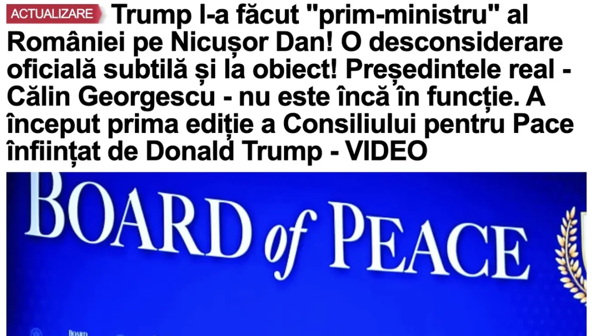 “În prezentarea tuturor invitaților, președintele SUA, Donald Trump, l-a desconsiderat diploatic subtil dar oficial pe Nicușor Dan, numindu-l „prim-ministru” al României. La acest nivel înalt este imposibilă o asemenea „greșeală”. Mesajul este clar: Administrația Trump consideră ilegale alegerile prezidențiale din România, făcute după anularea alegerilor în urma cărora trebuia să iasă președinte Călin Georgescu, potrivit voințe poporului român, călcate în picioare de autorii Loviturii de Stat din țară și străinătate, membri și executanți ai rețelei globaliste antidemocratice”, a scris site-ul citat.
