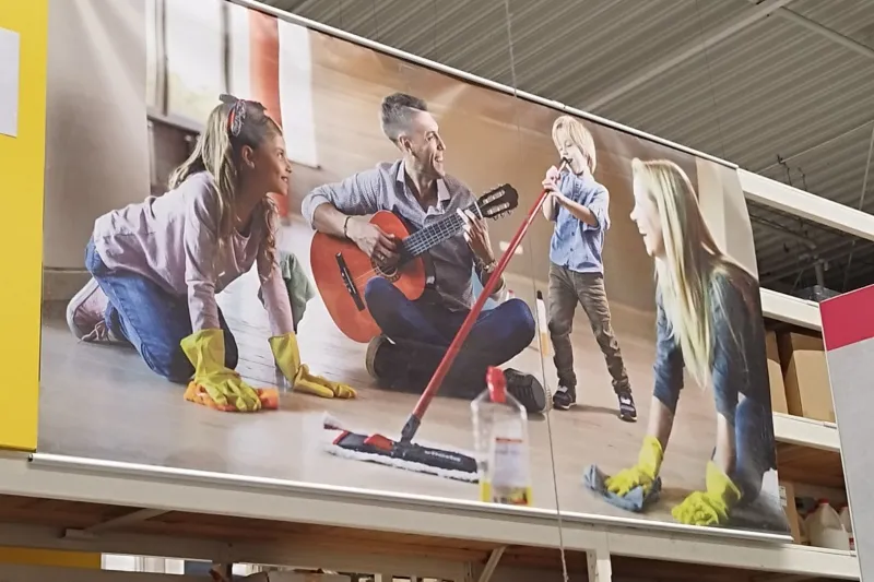 „Hei Leroy Merlin Romania, am văzut că aveți imagini în magazine cu femei care fac curățenie în genunchi în timp ce băieții se distrează. Not ok”, este mesajul transmis de FILIA pe Facebook.
